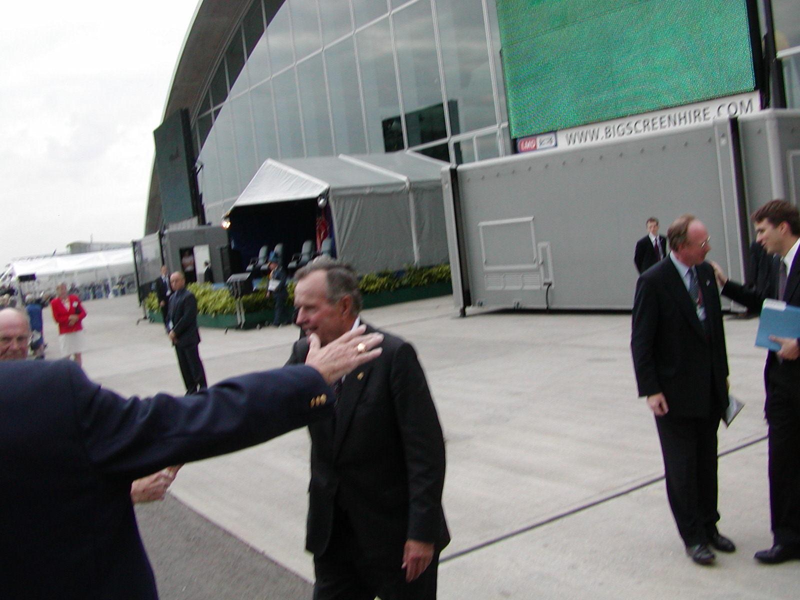 The President approaches us to shake hands.