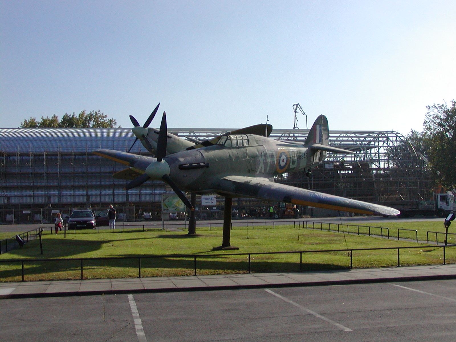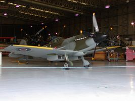 London. Hurricane in foreground, Spitfire aft. Note new "hangar"